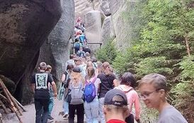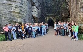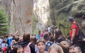 Pogoda dopisała, niebo było bezchmurne, a słońce świeciło tak, jakbyśmy przywieźli je specjalnie dla siebie. Swoją przygodę rozpoczęliśmy w Adrszpaskich Skałach (Skalnym Mieście) w Czechach. Na okrężnym szlaku o długości 3,5 km podziwialiśmy niesamowite formy skalne, np. Głowa Cukru, Starosta i Starościna, Kochankowie. Następnie udaliśmy się do Karpacza, gdzie zakwaterowaliśmy się w hotelu.